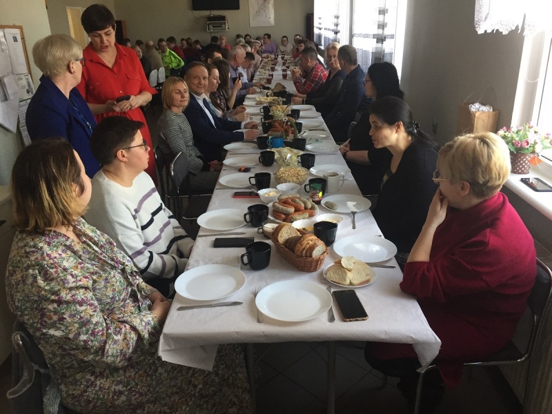 W Wielką Środę, 5 kwietnia, na naszej warsztatowej stołówce odbyło się śniadanie wielkanocne, na którym obecna była pani Prezes Stowarzyszenia „RAZEM” Barbara Karwacka, pani Kierownik Kamilla Wesołowska – Czajka, kadra oraz uczestnicy. Pani prezes wraz z panią kierownik złożyły wszystkim obecnym najserdeczniejsze życzenia Świąt Wielkanocnych.