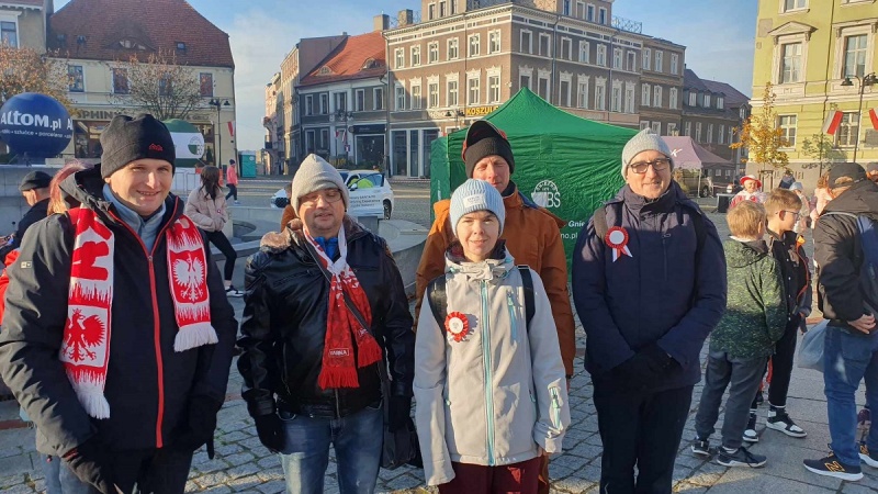 Nasz niepodległościowy rajd rozpoczęliśmy na gnieźnieńskim rynku. Uczestników rajdu powitała komandor rajdu pani Ewa Bosacka, w towarzystwie pana Pawła Trygalskiego, który przygotował trasę sobotniego rajdu. Maszerując gnieźnieńskimi zakątkami, dowiedzieliśmy się m.in. o walkach dzieci wrzesińskich i ich rodziców w obronie języka polskiego, a także o działalności i walce o niepodległość Józefa Chociszewskiego, następnie na grobie naszego lokalnego działacza oraz jego żony, zapaliliśmy pamiątkowy znicz. Na mecie rajdu w Szkole Podstawowej nr 5, na wszystkich 56 piechurów - czekały rogale, cukierki i soczek. Rozstrzygnięto również konkurs na najbardziej oryginalny strój niepodległościowy, a jego uczestnicy otrzymali nagrody.