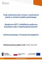Informujemy, iż w naszym WTZ realizowany jest grant "Bezpieczne WTZ i rehabilitacja społeczno-zawodowa osób z niepełnosprawnościami".