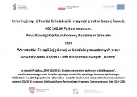 Informujemy, iż Powiat Gnieźnieński otrzymał grant w łącznej kwocie 460 260,00 PLN na wsparcie: Powiatowego Centrum Pomocy Rodzinie w Gnieźnie oraz Warsztatów Terapii Zajęciowej w Gnieźnie ...