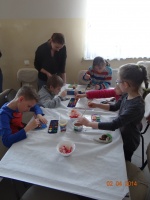 Śniadanie wielkanocne w warsztatach odbyło się 17.04.2014 roku o godzinie 11. W jadalni znajdowały się stoły na 60 uczestników, pokryte obrusami i świątecznymi dekoracjami. Co najważniejsze :) na stołach nie zabrakło pysznego jedzenia.