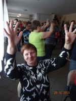 W piątek 25.10. pojechałem z Marcinem, Łukaszem G., Michałem, Agnieszką i Kasią Ś. do Domu Samopomocy „Tęcza” Stowarzyszenie „MAKI” na zabawę z okazji HALLOWEN. Sala była przyozdobiona dyniami, nietoperzami i pająkami.