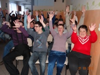 Dnia 21 marca (był to czwartek) odbyły się u Nas warsztaty teatralne na wesoło. Przyjechała do Nas Pani z teatru z Krakowa. Pani zaproponowała nam "zabawę w teatr". Opowiadała i pokazywała jak przygotowują się aktorzy teatralni do sztuki.