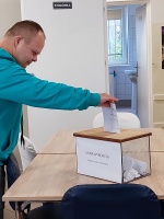 Urna wyborcza zlokalizowana była na stołówce, na karcie wyborczej widniały nazwiska 8 kandydatów ...
