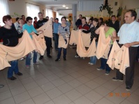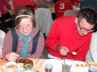 W piątek 25.10. pojechałem z Marcinem, Łukaszem G., Michałem, Agnieszką i Kasią Ś. do Domu Samopomocy „Tęcza” Stowarzyszenie „MAKI” na zabawę z okazji HALLOWEN. Sala była przyozdobiona dyniami, nietoperzami i pająkami.